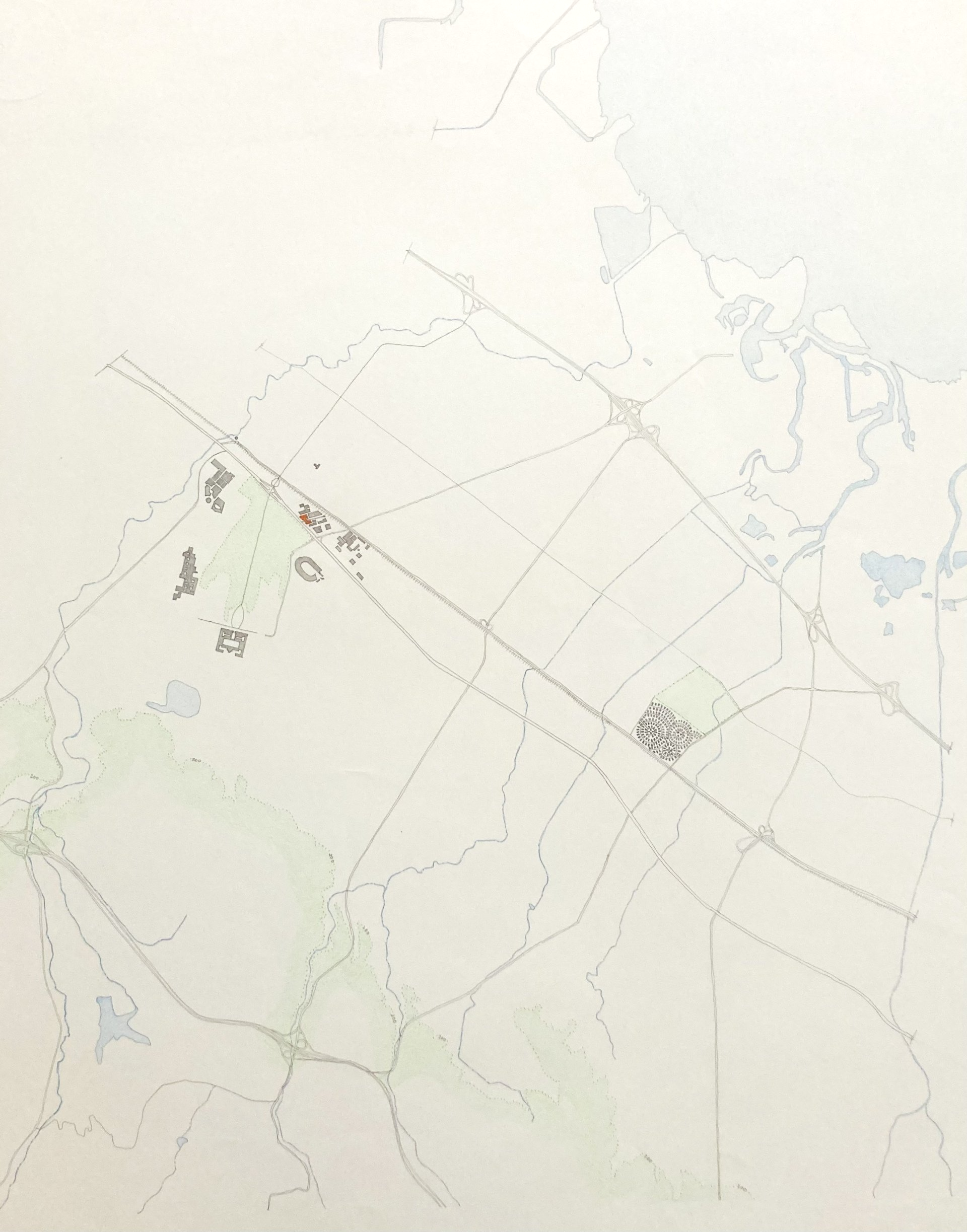 Mila Metis explores the interesting edges of local knowledge that lie between myth and memory. Holding the tension between storytelling and abstract expression, Mila’s work plays with family history that is juxtaposed between the former Yugoslavia and California where she grew up through hand drafted mapping, architectural modeling, paper maché and photography.